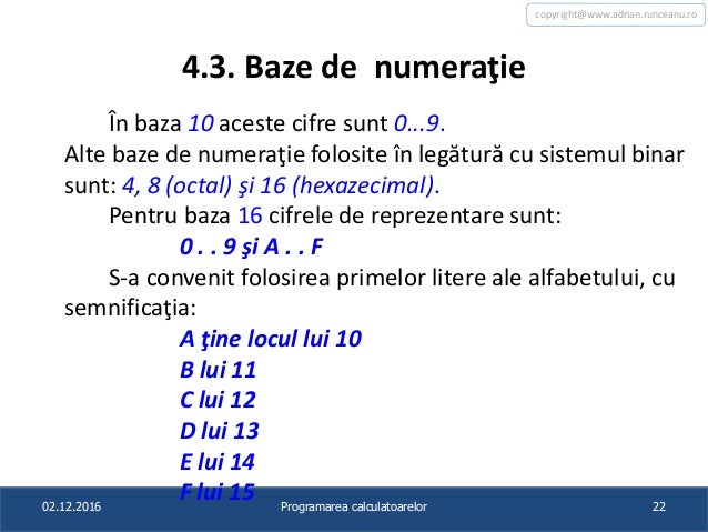 Savesave cid baze de numeratie for later. 4) stabiliti daca sistemul de ecuatii de mai jos este compatibil, apoi calculati valorile necunoscutelor utilizand urmatoarele metode de rezolvare: Lui 0 nu îi ataşăm nici un semn.
