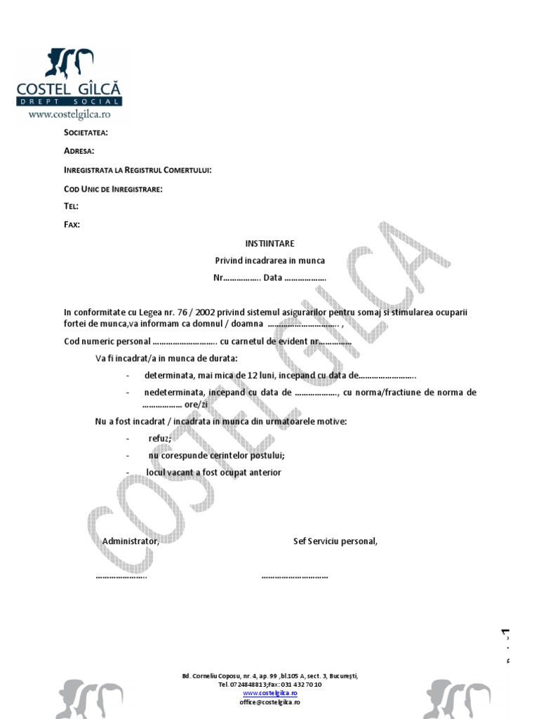 Instiintare emisa de angajator privind incadrarea in munca; Instiintare privind incadrarea in munca 2011 football accuracy throwing tire. 226/2006 privind incadrarea unor locuri de munca in conditii speciale.