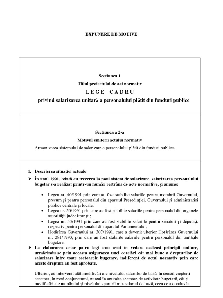 O lege a salarizarii unitare ar prevede exact salariile pentru fiecare profesie si functie, in functie de gradatii. (10 apr 2017) pdf, 3mb.