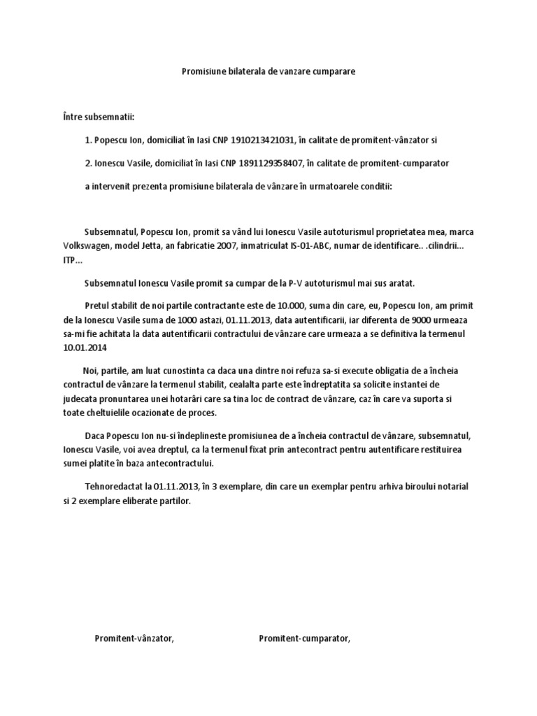 Model Antecontract Vanzare Cumparare