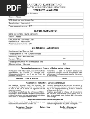Pentru a realiza această listă de contracte a fost nevoie de un research destul de îndelungat. Prezentul contract intra in vigoare la data semnării si stampilării sale de către reprezentanţii autorizaţi ai ambelor parţi si va produce efecte pana la îndeplinirea integrala a obligaţiilor asumate prin acesta. În contract va trebui să apară numele complet al vânzătorului, dar și al cumpărătorului, și să se specifice că prezentul contract a fost întocmit pentru vânzarea unui automobil.